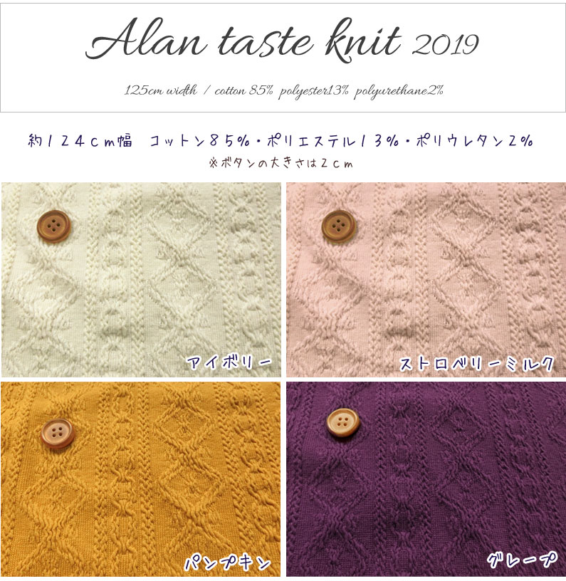 ▼人気のアラン風ニット♪*2019*※約124cm幅 コットン85%・ポリエステル13%・ポリウレタン2%