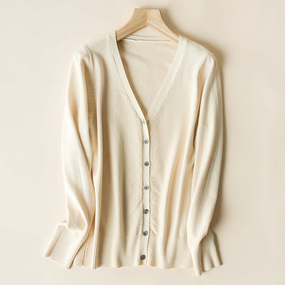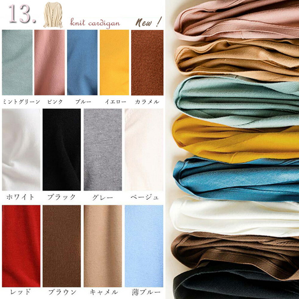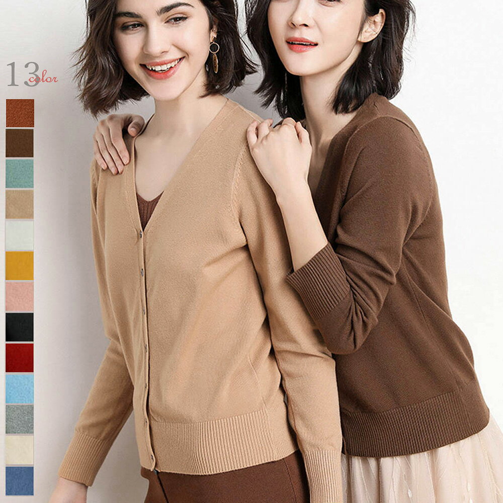ニットカーディガン レディース 春夏 Vネック 長袖 羽織 ボタン付き 薄手 ポリエステル