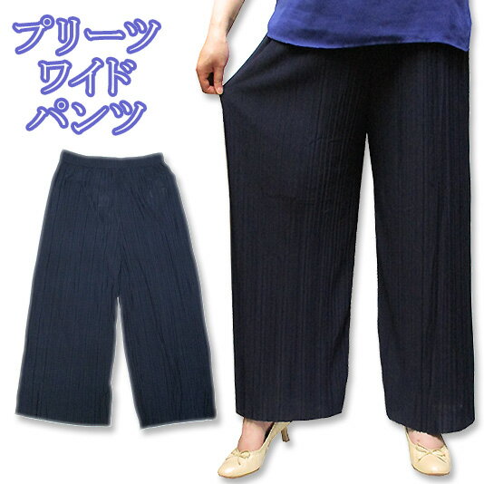 4色【ロングスカート風】ストレッチプリーツ素材のワイドパンツ♪エアリーなプリーツ素材の優雅なロングパンツ♪【レディース 婦人 スカンツ ガウチョパンツ】[春物][夏物][秋物]