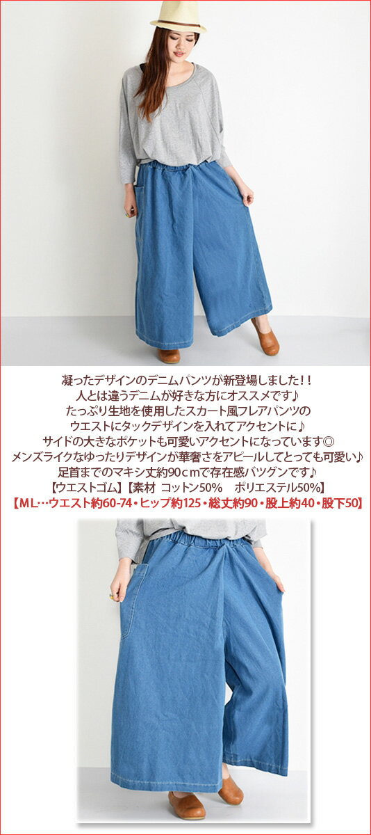 【レディース・婦人服・ボトムス・ガウチョ・綿混・コットン混】[春物][夏物][秋物][冬物] 凝ったデザインのデニムパンツが新登場しました!! 人とは違うデニムが好きな方にオススメです♪
