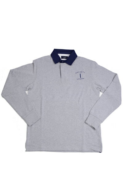 ハケット ロンドン メンズ HACKETT LONDON ラグビーシャツ コットンジャージ クレリックポロ ライトグレーxネイビー