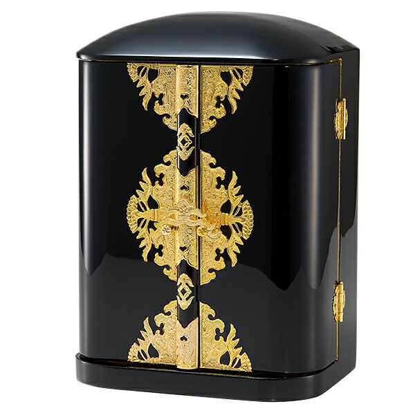 外寸法:高さ15.3cm×巾11.2cm×奥行9.3cm内寸法:高さ11.2cm×巾9.7cm×奥行7.2cm扉丈:4寸(12cm)材質:木製黒塗り、本金箔押し、金具打ち仕上げ生産地:日本製商品説明外寸法高さ15.3cm×巾11.2cm×奥行9.3cm内寸法高さ11.2cm×巾9.7cm×奥行7.2cm扉丈4寸(12cm)材質木製黒塗り、本金箔押し、金具打ち仕上げ生産地日本製お厨子は仏像を安置するためのもので、両開きの扉がついています。