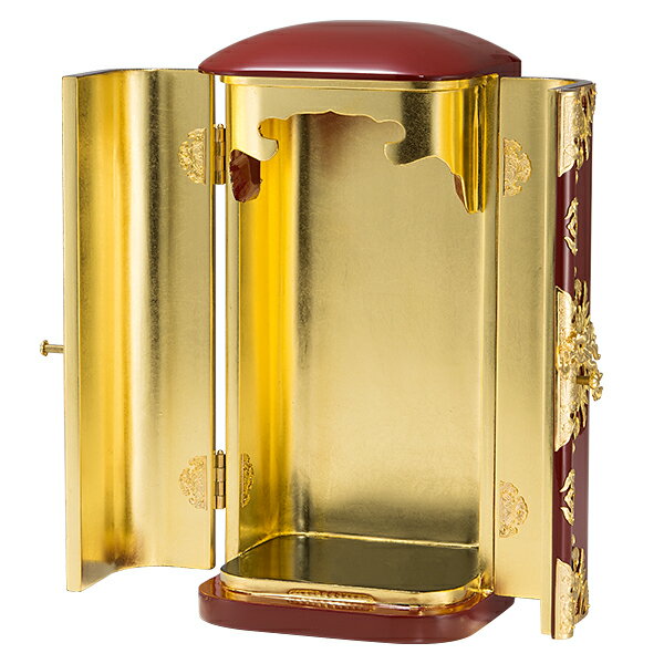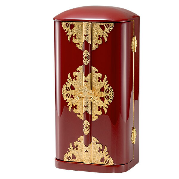 外寸法:高さ28.4cm×巾13.7cm×奥行10.6cm内寸法:高さ23cm×巾12.1cm×奥行9.7cm扉丈:8寸(24cm)材質:木製朱塗り、本金箔押し、金具打ち仕上げ生産地:日本製商品説明外寸法高さ28.4cm×巾13.7cm×奥行10.6cm内寸法高さ23cm×巾12.1cm×奥行9.7cm扉丈8寸(24cm)材質木製朱塗り、本金箔押し、金具打ち仕上げ生産地日本製お厨子は仏像を安置するためのもので、両開きの扉がついています。