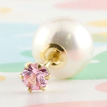 片耳ピアス パールキャッチピアス パールピアスキャッチ ピンクサファイア 9月誕生石 ピアス イエローゴールドk18 スタッドピアス 18k 18金 あこや本真珠 アコヤ真珠 パール キャッチ レディース【楽ギフ_包装】【コンビニ受取対応商品】 送料無料